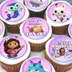 • 24 Gabby's Dollhouse Edible Cupcake Toppers - Precut on Wafer Paper, Sugar Sheet, or without cutting Chocotransfer