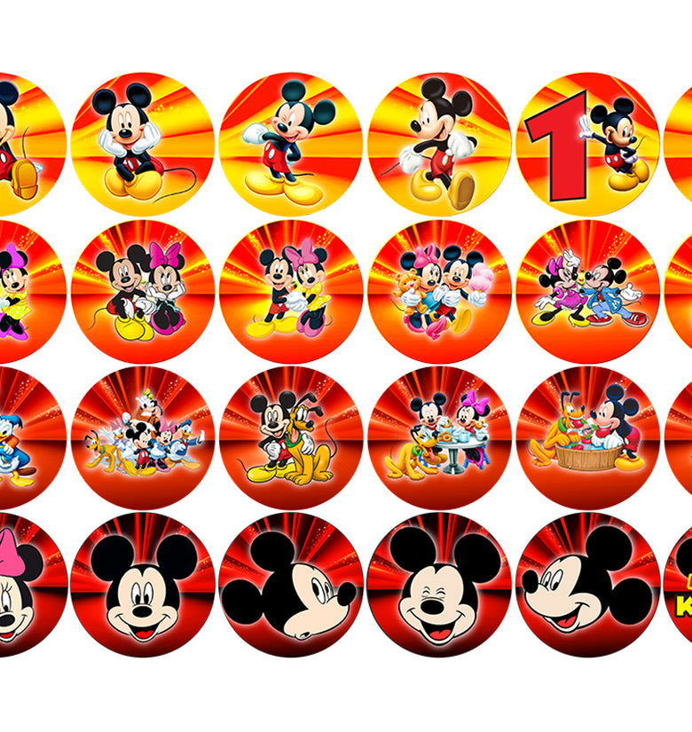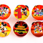 Customized Edible Cupcake Toppers featuring Mickey Mouse and Friends - 24 Pre-Cut Pieces on Wafer Paper, Sugar Sheet, or Uncut Chocotransfer