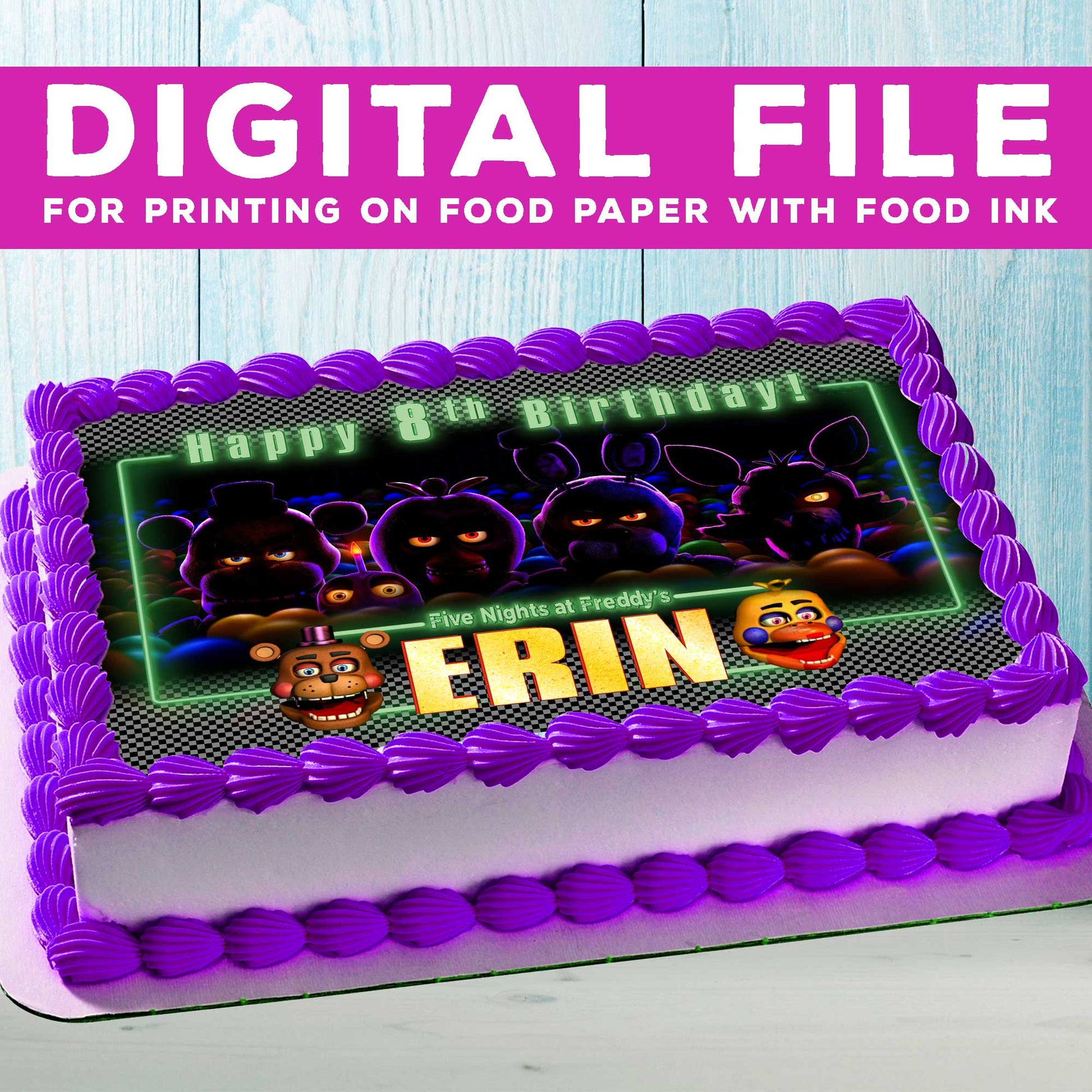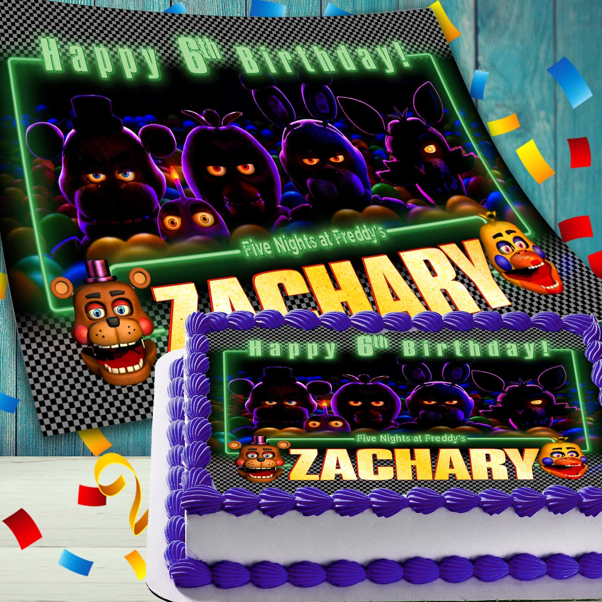 Five Nights at Freddy’s Birthday Themed Edible Cake Topper - Rectangular Design - Wafer Paper, Sugar Sheet, Chocotransfer