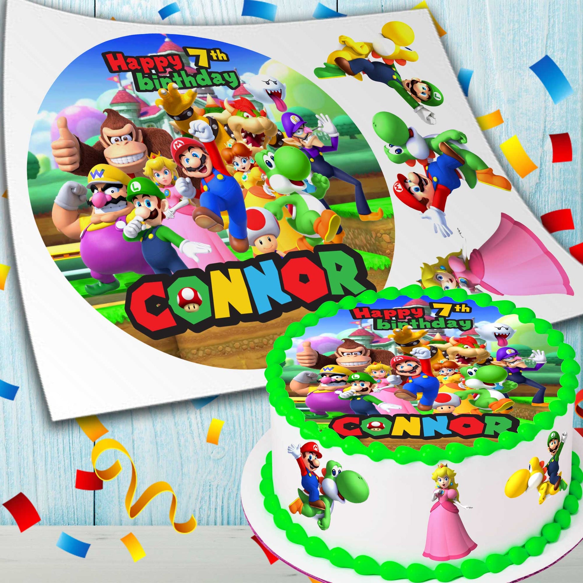 Collection of 4 Pre-cut Super Mario Edible Cake Toppers: Choose from Wafer Paper, Sugar Sheet, or Uncut Chocotransfer Options