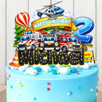 Kids Vehicles Birthday Cake Topper – Personalized with Name & Age