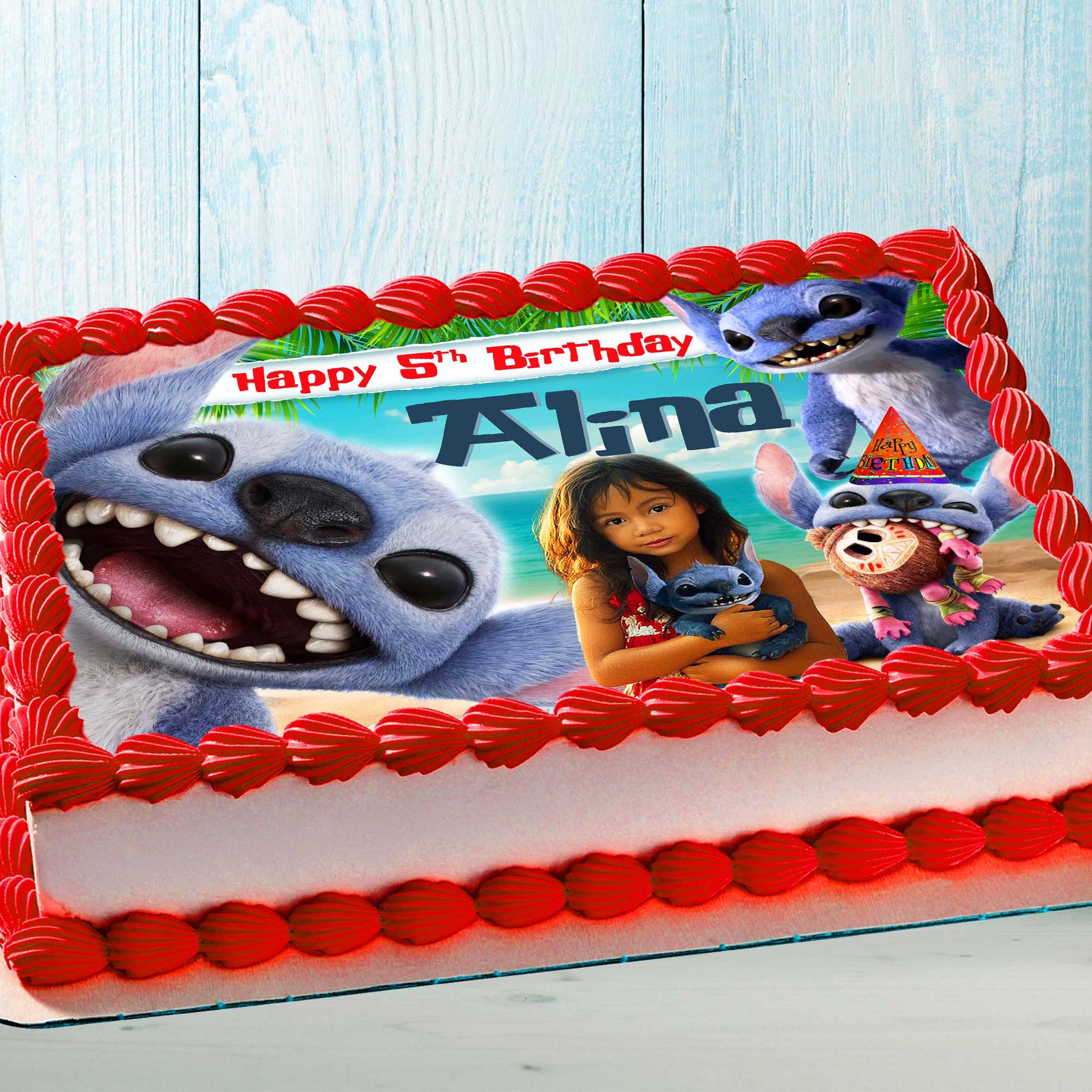Lilo & Stitch Birthday Themed Edible Cake Topper β Rectangular Design β Wafer Paper, Sugar Sheet, Chocotransfer