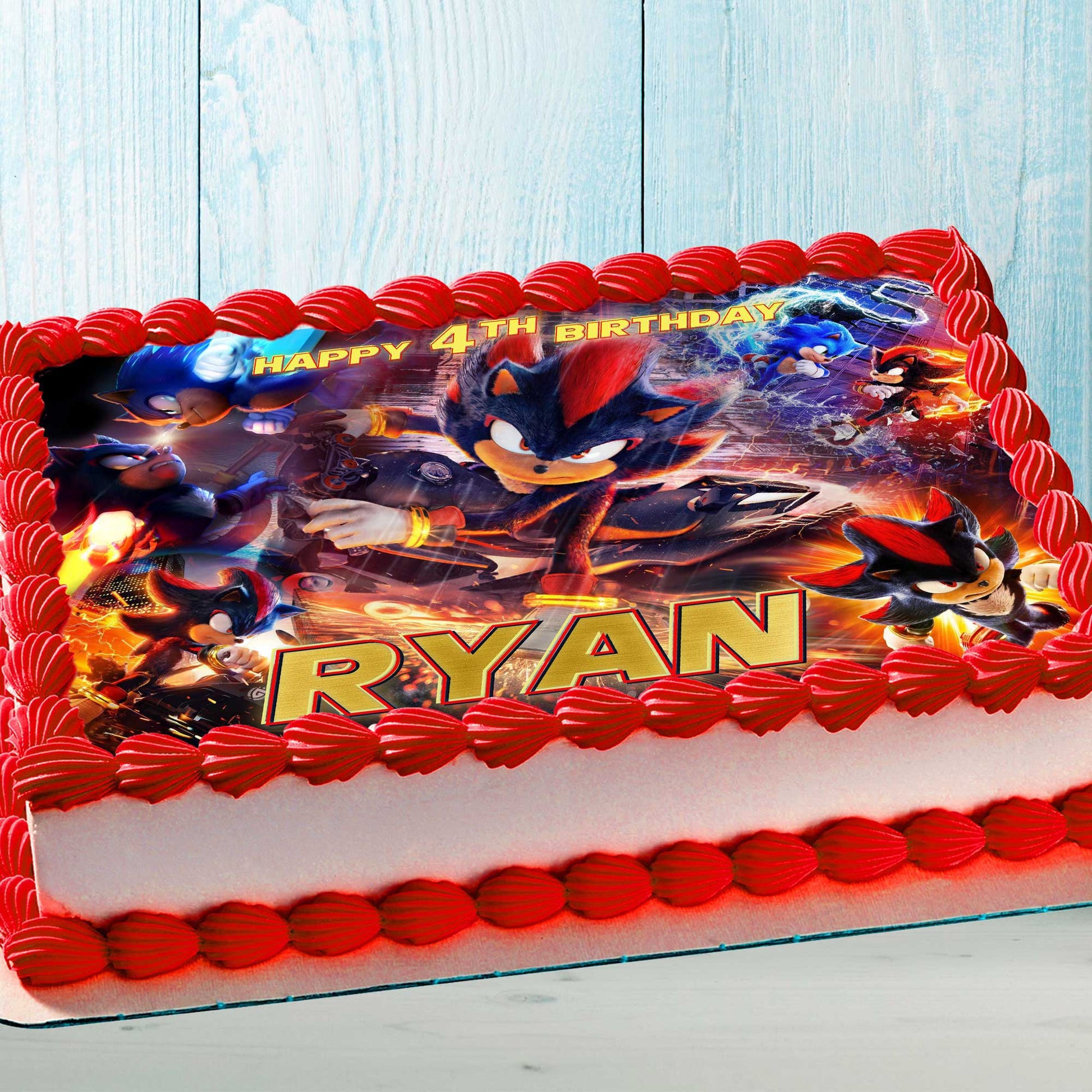 Shadow the Hedgehog Birthday Edible Cake Topper - Sonic Theme - Rectangular Design - Wafer Paper, Sugar Sheet, Chocotransfer