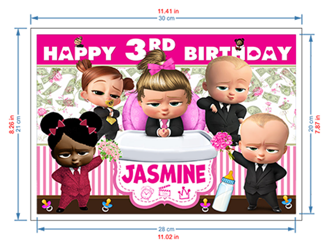 Boss Baby Girl Birthday Themed Edible Cake Topper - Rectangular Design - Wafer Paper, Sugar Sheet, Chocotransfer