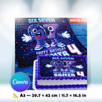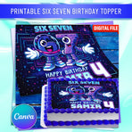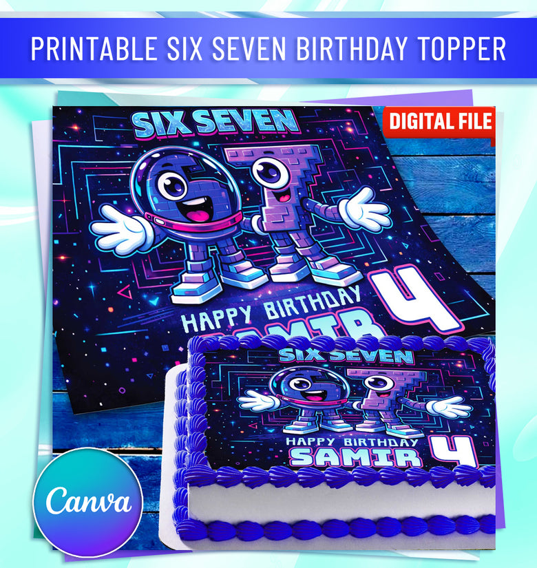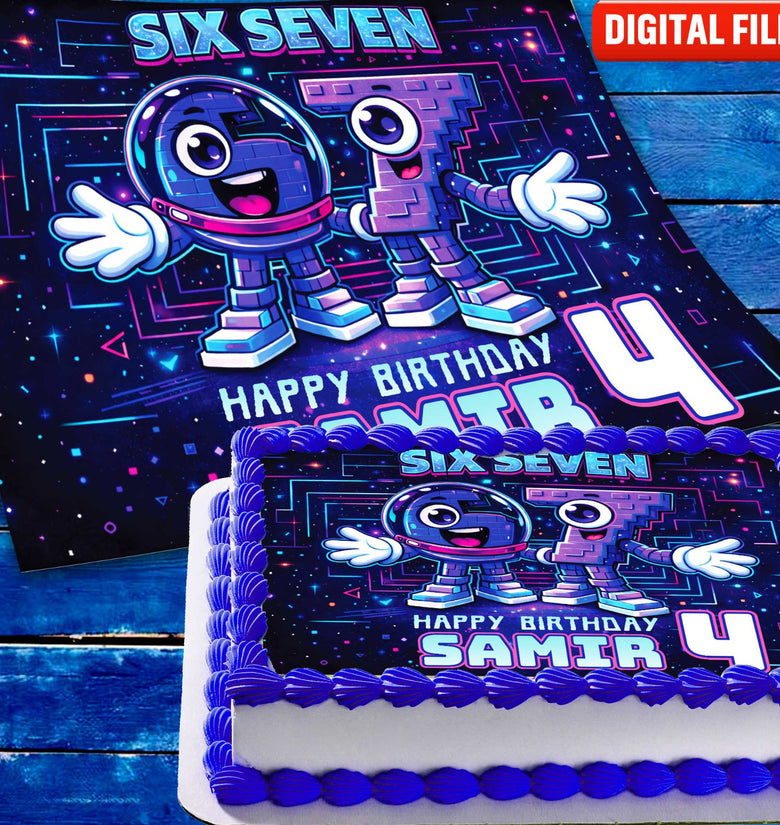 Inspired by the popular “6–7” internet meme trend, the design combines a modern digital look with a lighthearted, cartoon style — perfect for boys’ birthday parties, gamer themes, or fun meme celebrations.