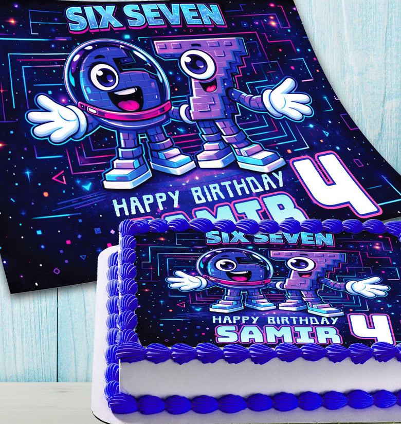 • Six Seven Birthday Cake Topper – Personalized Edible Cake Image with Name & Age