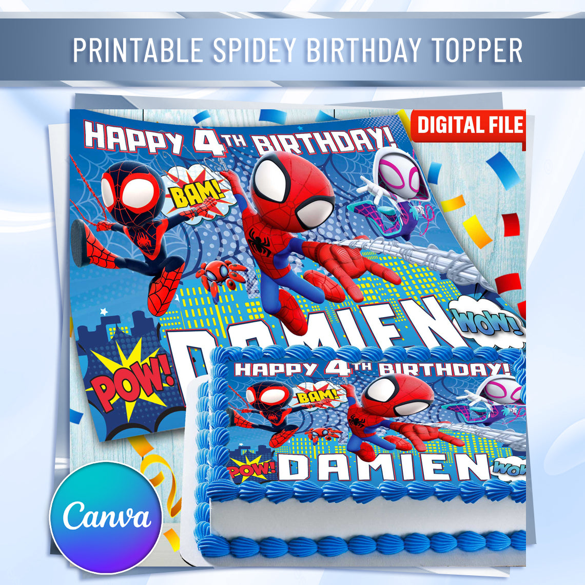 Spidey Birthday Cake Topper β Edible Image for Kids Party β Superhero Spider Theme β Wafer, Sugar Sheet, Chocotransfer