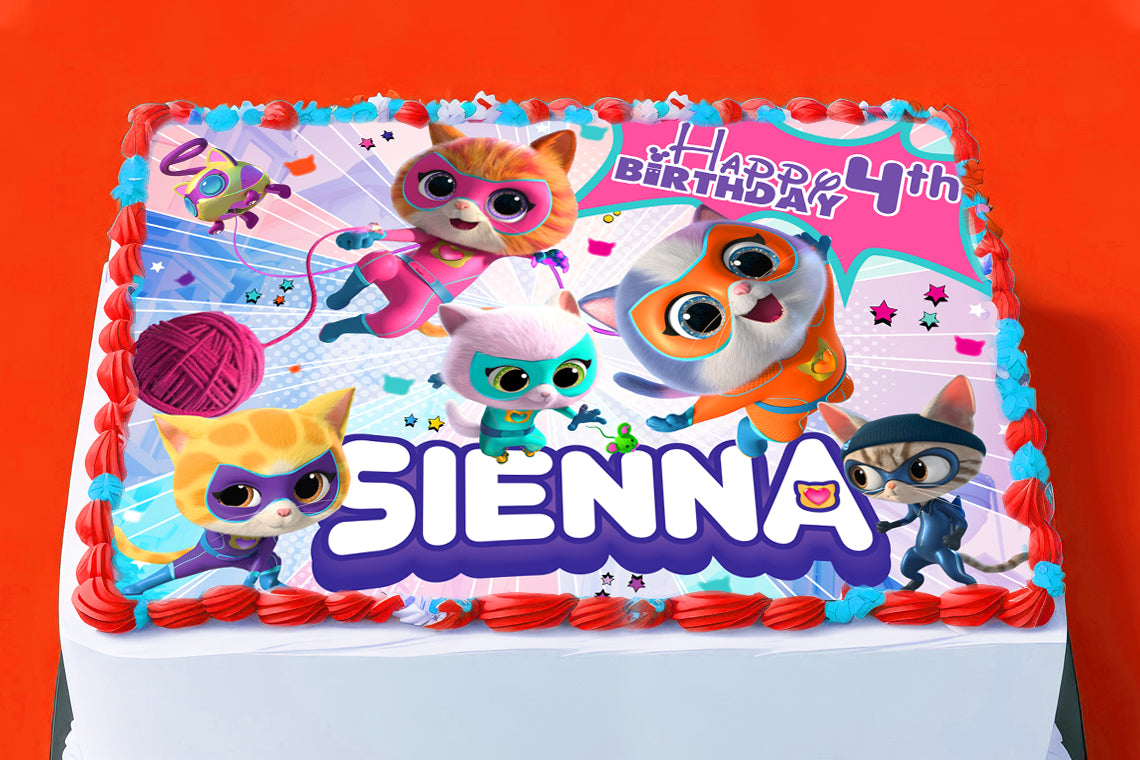 SuperKitties Birthday Themed Edible Cake Topper - Rectangular Design - Wafer Paper, Sugar Sheet, Chocotransfer