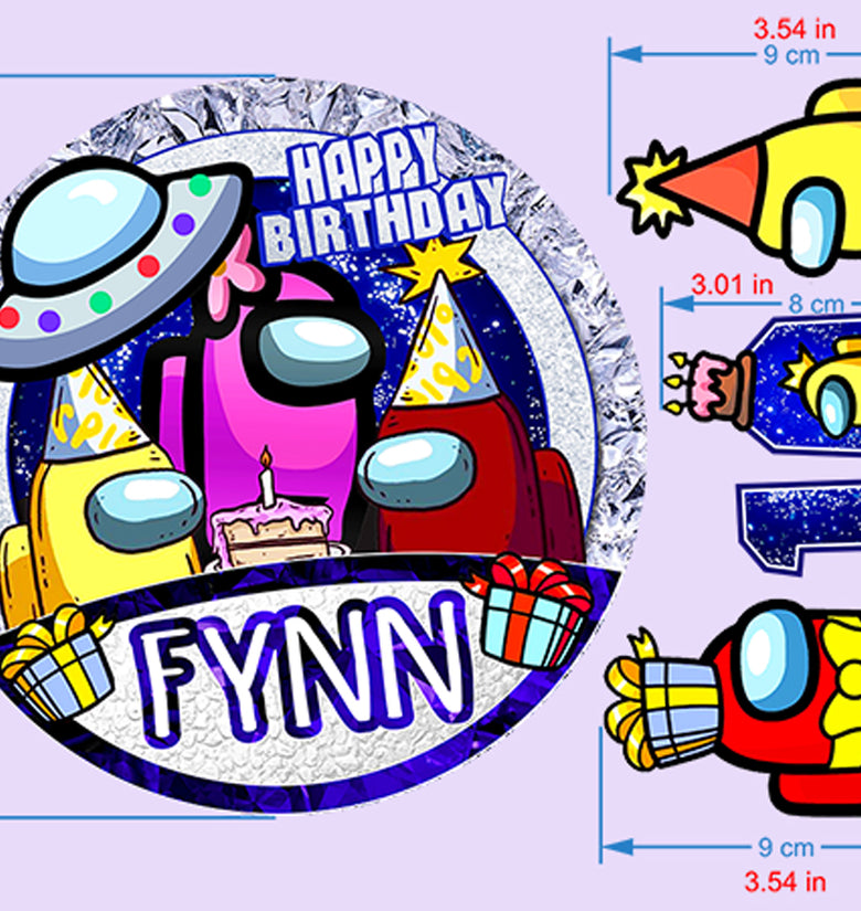 • Set of 4 Among Us Edible Cake Toppers - Precut on Wafer Paper, Sugar Sheet
