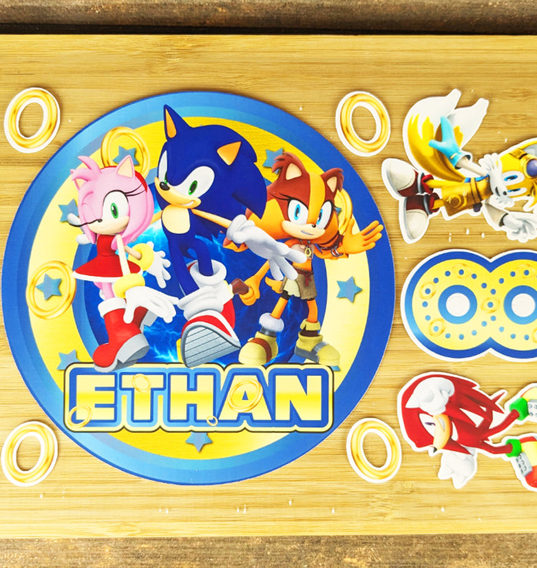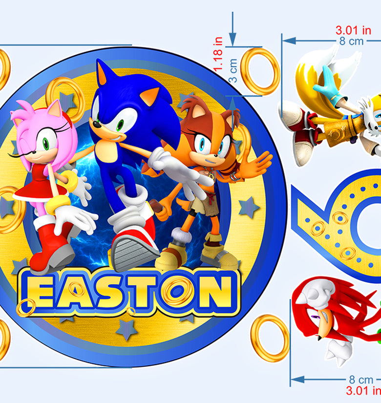 Set of 8 Sonic Edible Cake Toppers - Precut on Wafer Paper, Sugar Sheet, or without cutting Chocotransfer