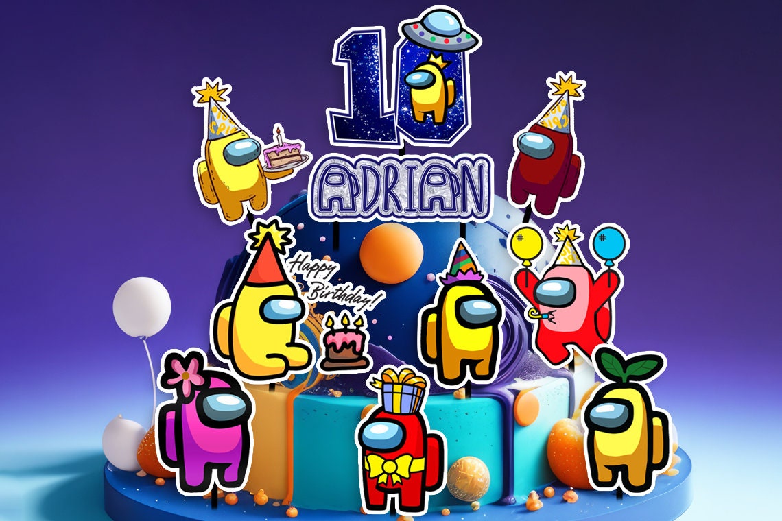 Set of 10 Personalized Among Us Cake Toppers with Name and Age - A Must-Have for Your Among Us-Themed Celebration