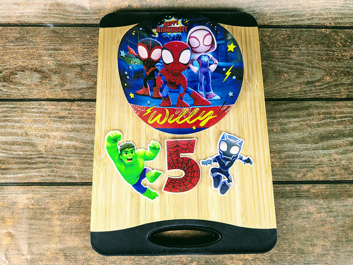 Set of 4 Spidey Edible Cake Toppers - Precut on Wafer Paper, Sugar Sheet, or without cutting Chocotransfer