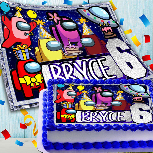 Among Us Birthday Themed Edible Cake Topper - Rectangular Design - Wafer Paper, Sugar Sheet, Chocotransfer