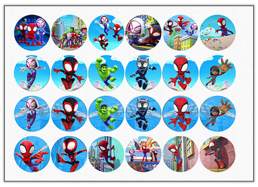 24 Spidey Edible Cupcake Toppers - Choose from Wafer Paper, Sugar Sheet, or Chocotransfer with No Cutting Required