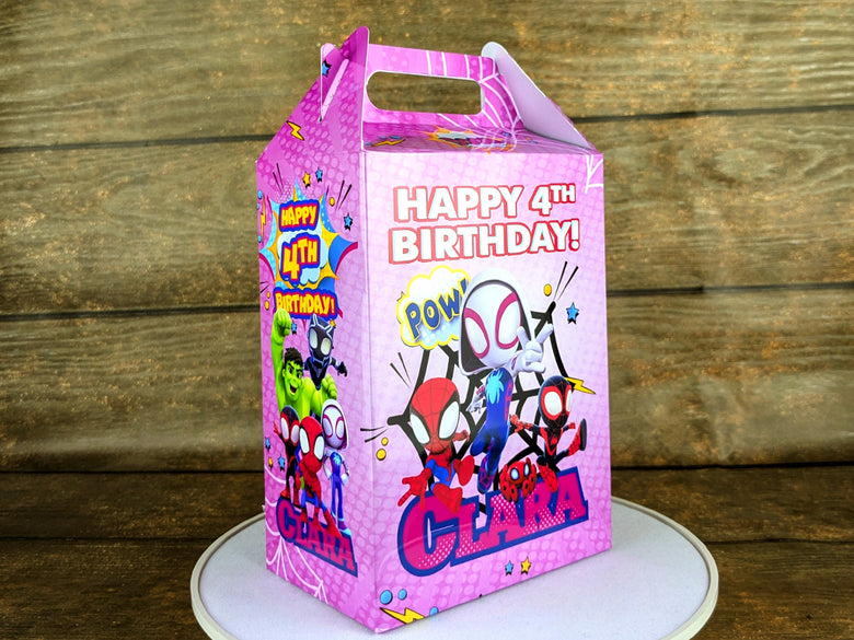 • Spidey Themed Gable Box for Girls: Personalized Meal Box for Burger & Fries Party Favors! Perfect for Birthdays, Weddings, and More!