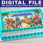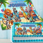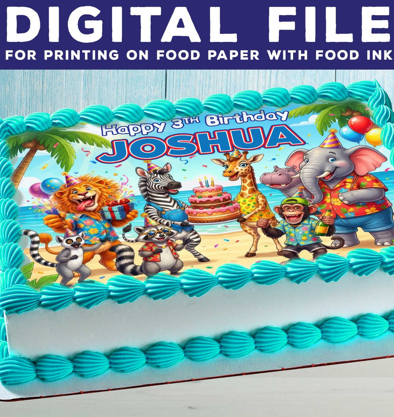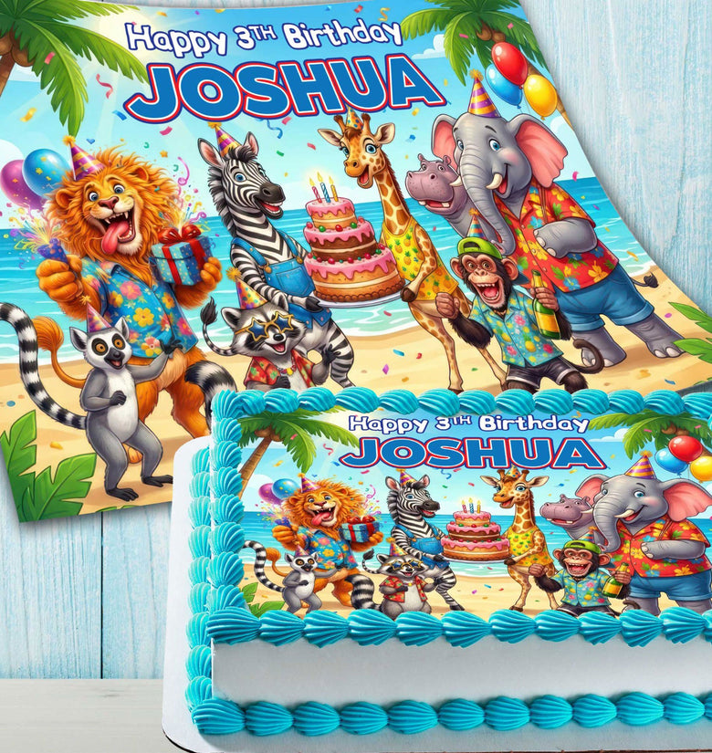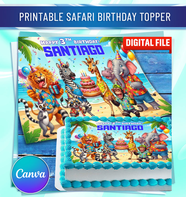 • Safari Birthday Cake Topper – Edible Image with Name for Birthday Party