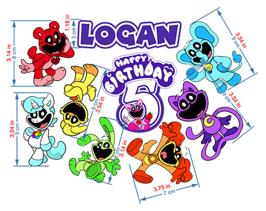 Set of 6 Huggy Wuggy Edible Cake Toppers - Precut on Wafer Paper, Sugar Sheet, or without cutting Chocotransfer
