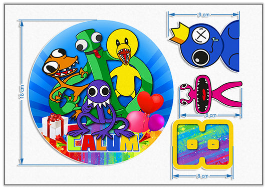 Set of 4 Rainbow Friends Edible Cake Toppers - Precut on Wafer Paper, Sugar Sheet, or without cutting Chocotransfer