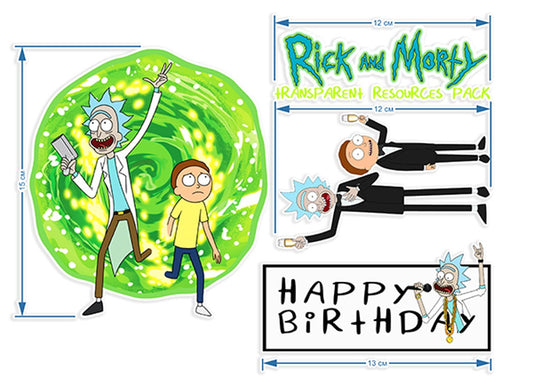 Set of 4 Rick and Morty Edible Cake Toppers - Precut on Wafer Paper, Sugar Sheet, or without cutting Chocotransfer
